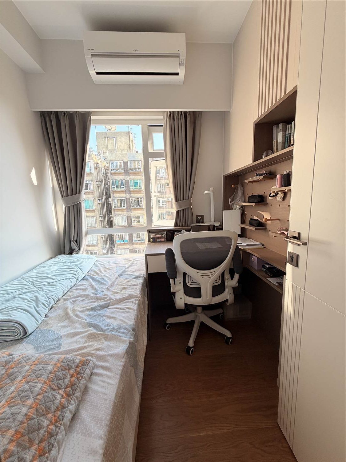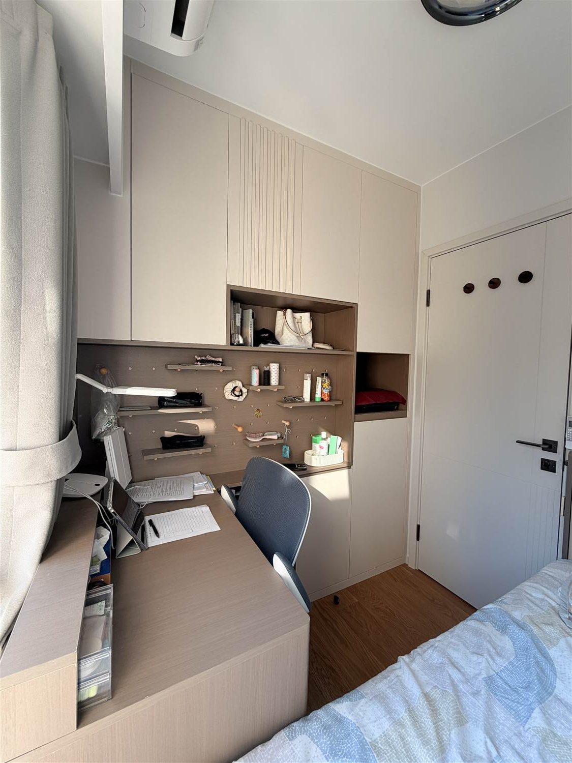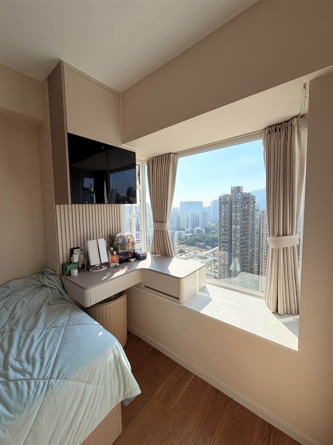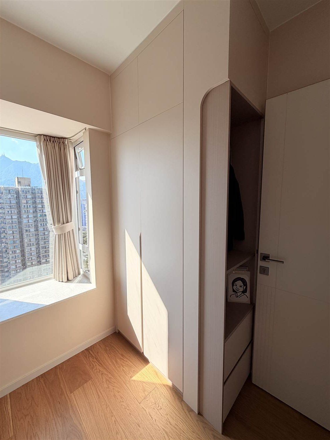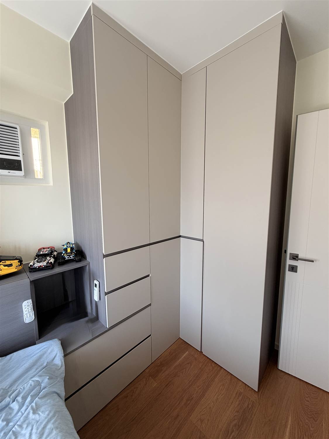 本單位因應實際房間呎吋及生活需要,整體訂造傢俬設計以「提升空間使用率」及「視覺一致性」為核心。兩個睡房均因空間比例所限,設計團隊巧妙將訂造衣櫃結合間牆功能,一物多用,既有效分隔空間,同時增加大量實用收納,避免傳統實牆帶來的壓迫感。
